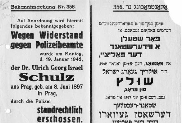 “February 21 [1942] will long be remembered by the inhabitants of the ghetto. On this day the first public execution was held. The place of execution was a large square at the intersection of the streets of Bazarowa and Lutomierska. Until the very last moment people did not know that an execution would be held at the square (...). In the middle of the square gallows were set up. A few minutes after ten o'clock in front of the displaced office building on Rybna Street a droshy arrived with a ill-fated man in handcuffs, escorted by officers from the Central Prison (...) Until the last moment the convict remained completely calm. (...) When he took off his cloak, he made a quiet, humble request to spare his life. (...) Also, the wife and daughter of the convict were present at the execution. The execution had a profound impact on the ghetto "