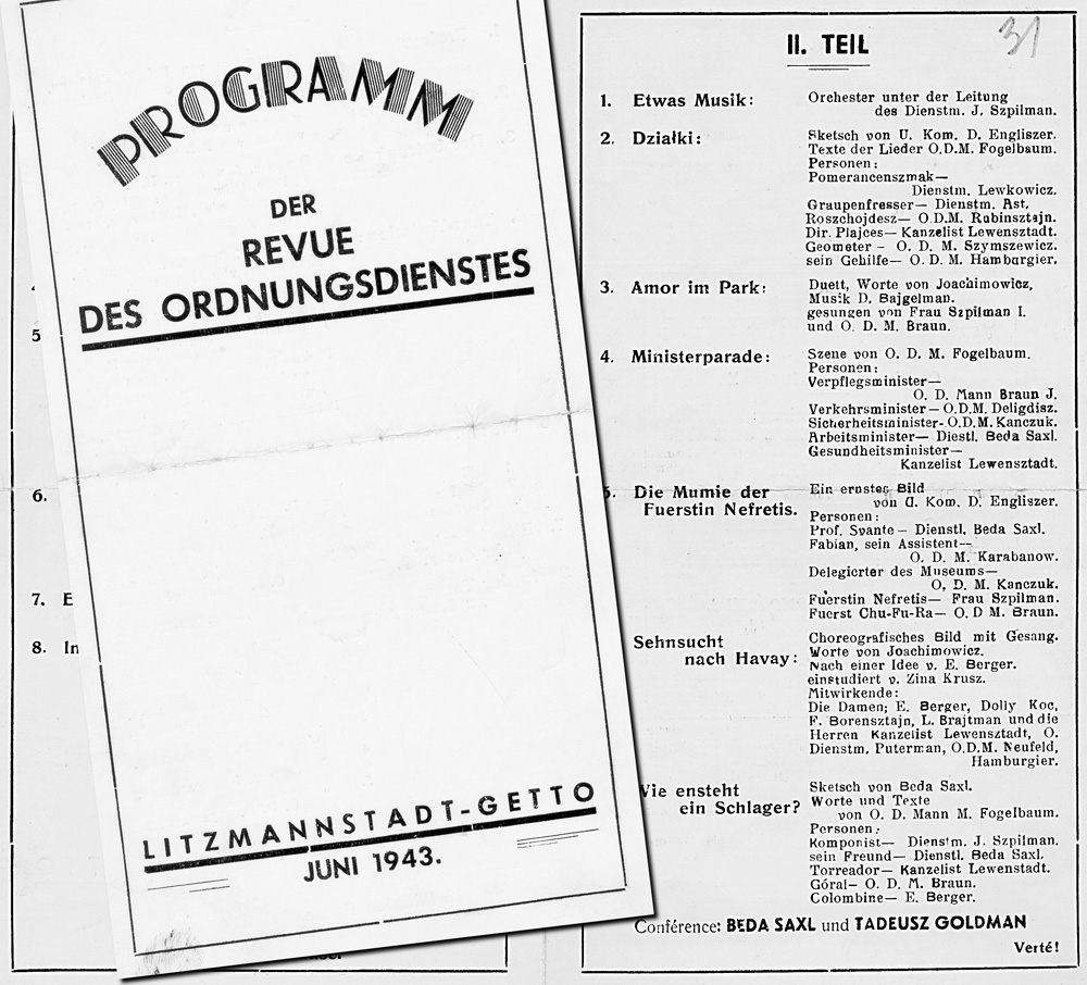 Głównym miejscem, gdzie w getcie odbywały się regularnie koncerty, przedstawienia, rewie , okolicznościowe uroczystości, był Dom Kultury (Kulturhaus) przy ul Krawieckiej. Obecny bywał na nich oczywiści sam Rumkowski, co miało wpływ na poziom przedstawień. Prezes wymagał bowiem od swojego otoczenia a także od artystów hołdów i bezwzględnego posłuszeństwa.