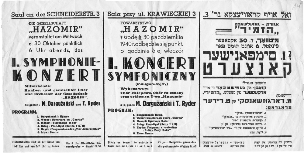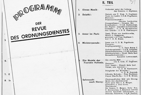 The main venue where the cultural life in the ghetto focused, where regular concerts, shows, revues, greeting ceremony were held, was the House of Culture (Kulturhaus) on Krawiecka Street. It was frequented by Rumkowski, which had an impact on the level of performances. The chairman demanded tributes and absolute obedience from those around him as well as from artists.