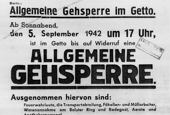 “On September 5 [1942], the Notice of the Chairman No. 391 was announced, banning people from leaving their houses from 5 pm until further notice. But on Thursday Rumkowski told us that deportation operation would include children under ten years of age and the elderly over sixty five years.”